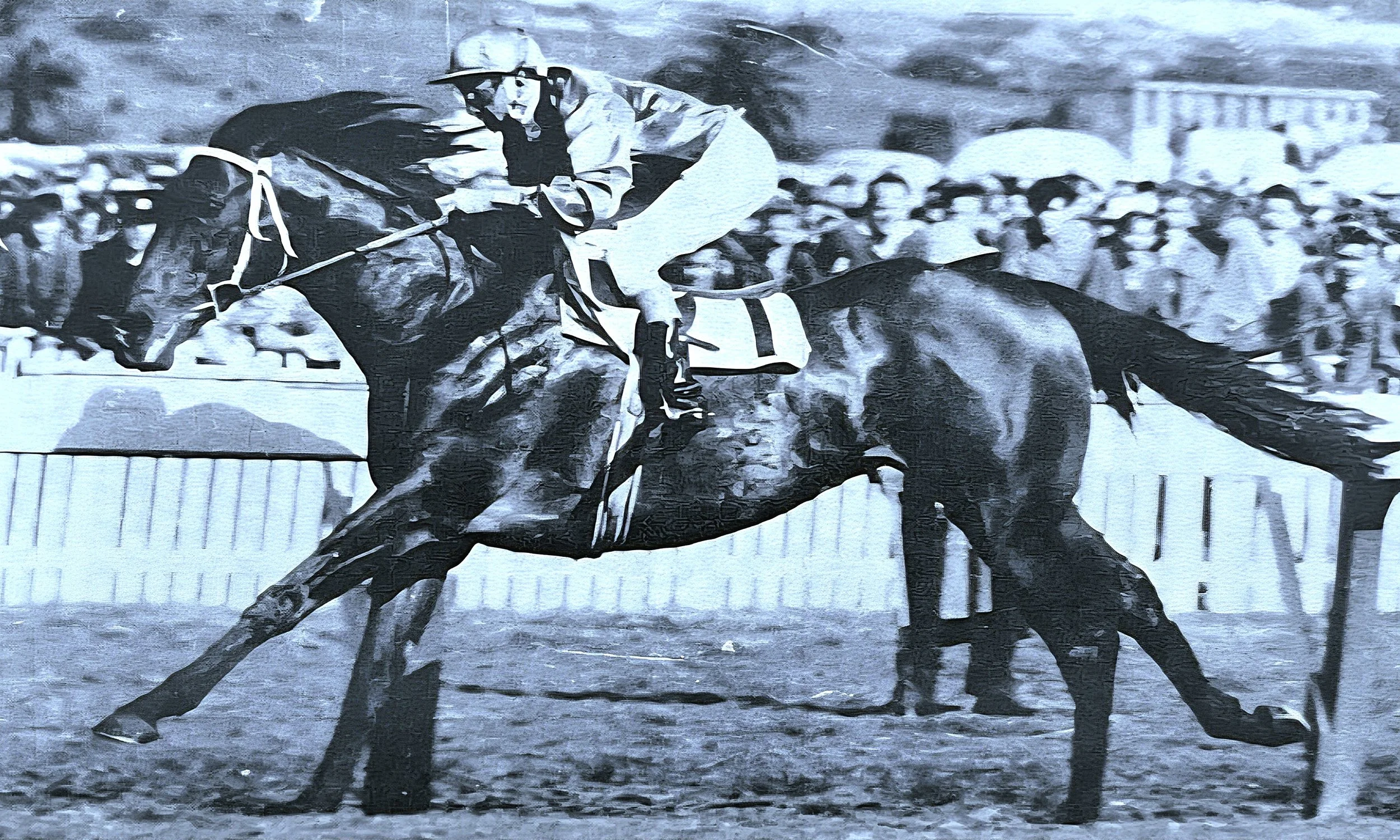 SKY HIGH began his career in October, 1959, with a slashing win in the AJC Breeders’ Plate at Randwick. In the autumn of 1960 he was a 7-4 on winner of the Golden Slipper, defeating his great rival, WENONA GIRL. In the spring he moved to Melbourne where he was given little hope in the Victoria Derby; but he blitzed the field, leading from start to finish. 1961 was a stellar year for Sky High, winning the VRC Lightning Stakes, VATC Futurity Stakes, Caulfield Stakes, VRC Mackinnon Stakes in Melbourne, the STC Canterbury Stakes, AJC All Aged Stakes and Epsom Handicap in Sydney. In 1962 he won a further ten races at the highest level.